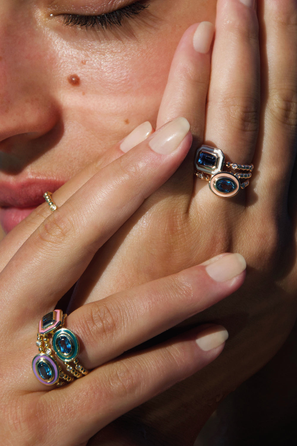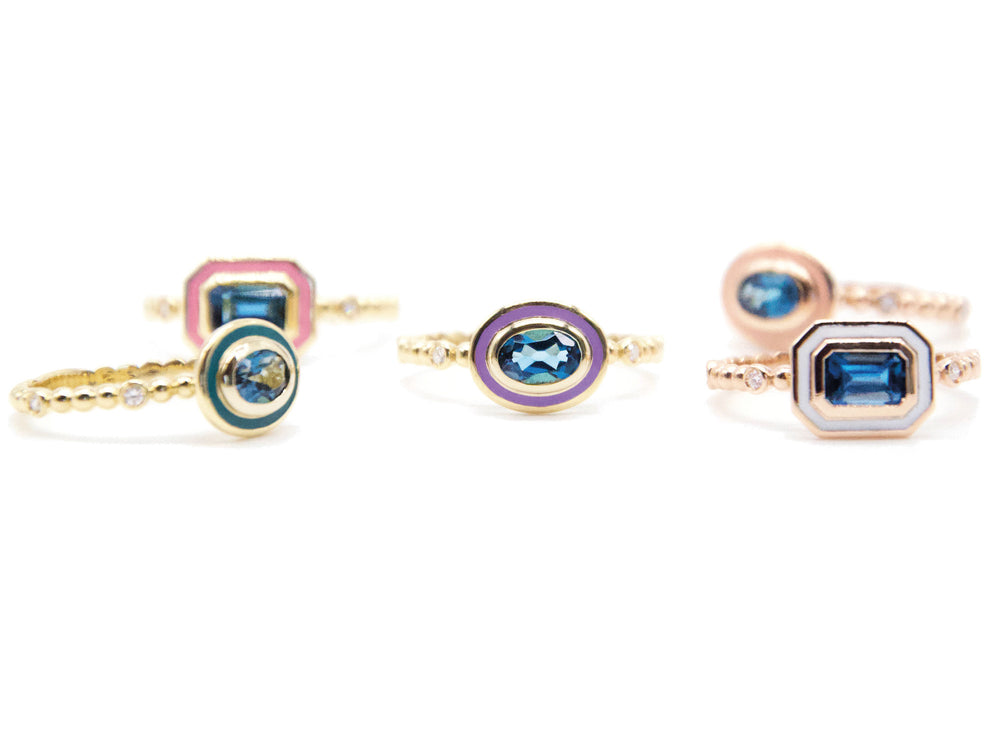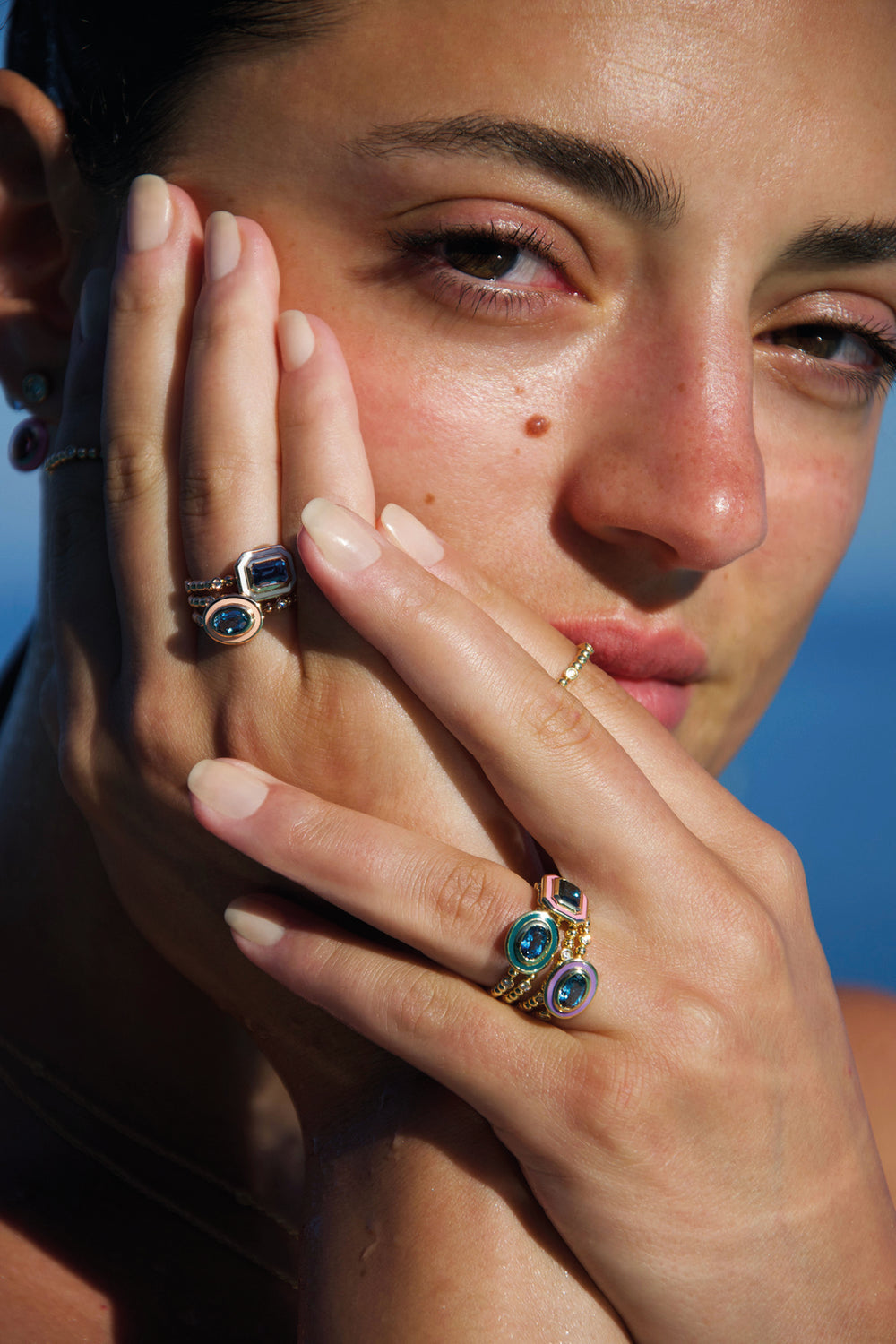 Tutte le collezione sono state realizzate in oro 18kt, pietre naturali e diamanti.